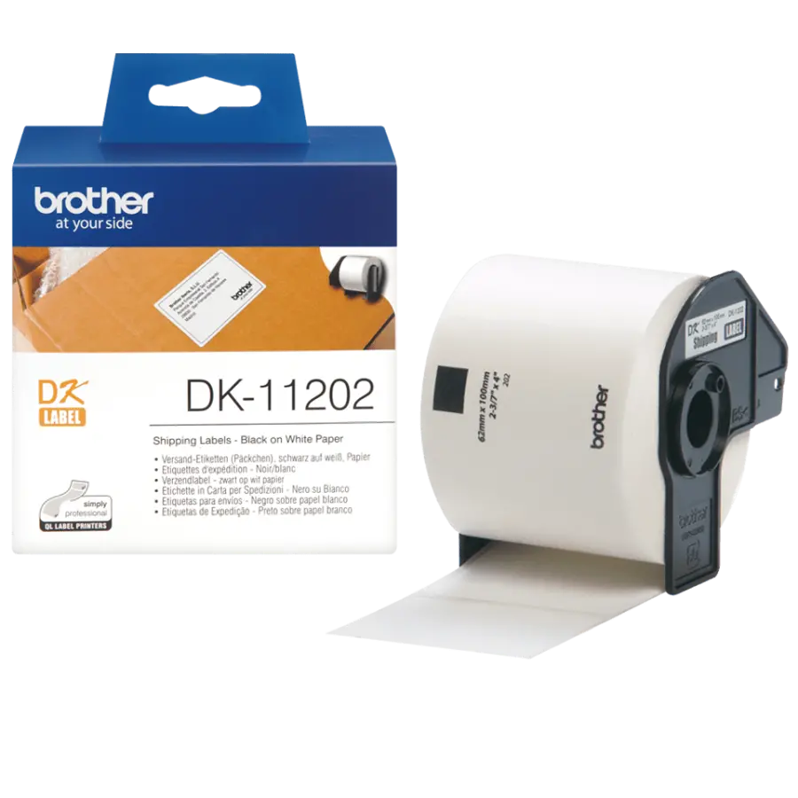 Met de Brother DK11202 labelprinter-tape print je heldere, zwarte teksten op witte labels van 100x62 mm. Deze rol bevat 300 labels, ideaal voor veelvuldig gebruik zonder steeds te hoeven wisselen. Of je nu pakketten, archiefmappen of producten wilt labelen, deze tape biedt een veelzijdige oplossing.