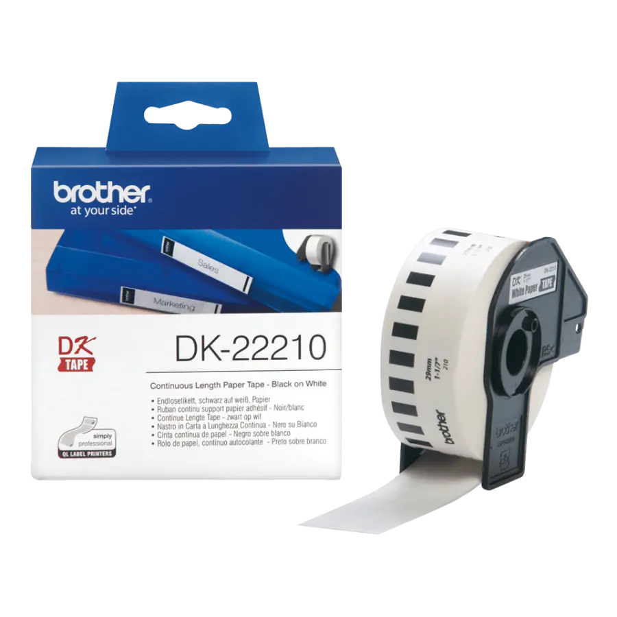 De Brother DK-22210 is een doorlopende labelprinter-tape van hoge kwaliteit, speciaal ontworpen voor diverse Brother QL labelprinters. Met een breedte van 29 millimeter en een lengte van maar liefst 30,48 meter heb je genoeg tape voor al je labelingbehoeften, of het nu gaat om kantoor, magazijn of thuisgebruik.