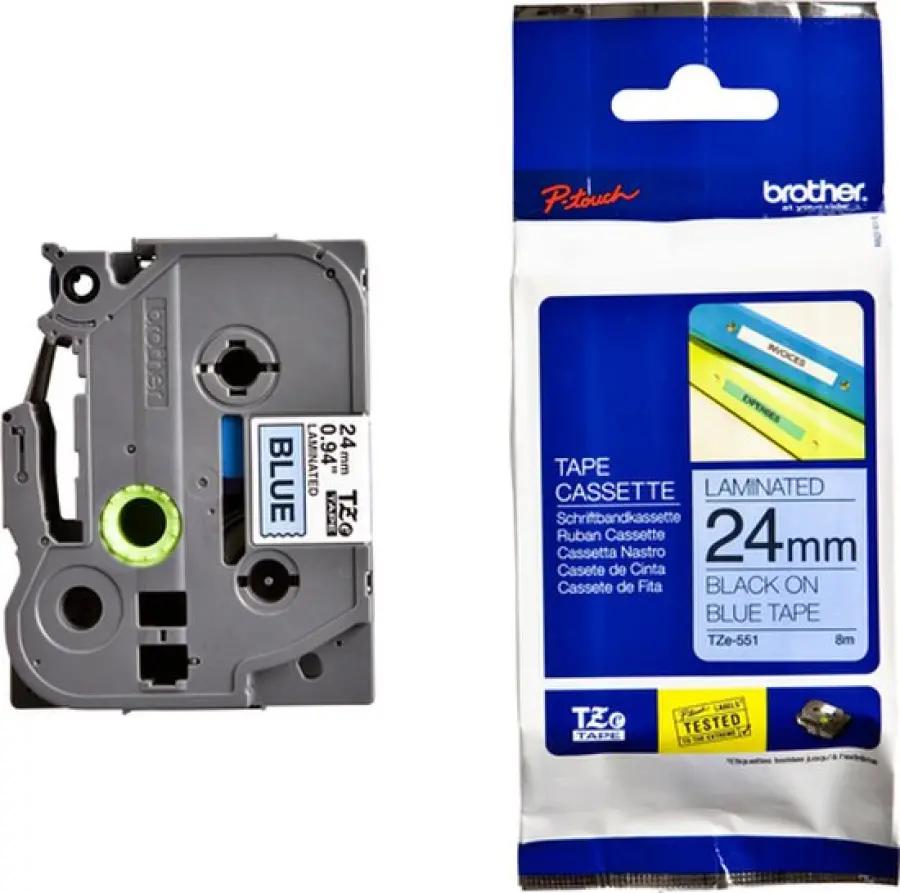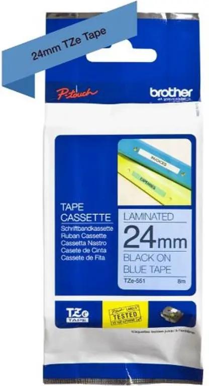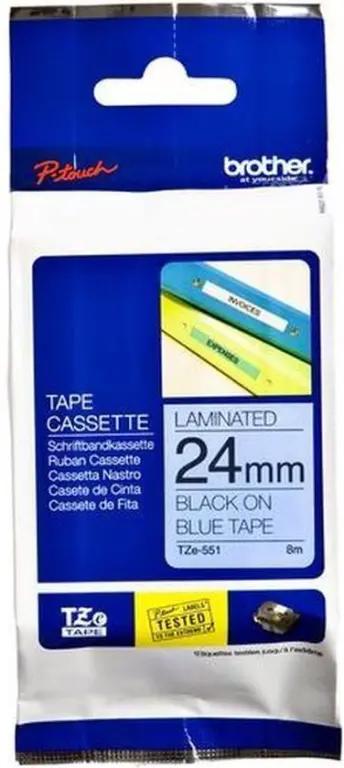 De Brother TZE551 is een originele gelamineerde label tapecassette die zorgt voor heldere en duurzame labels. De tape heeft een breedte van 24 mm en is voorzien van zwarte letters op een blauwe achtergrond, wat zorgt voor een uitstekend contrast en leesbaarheid.