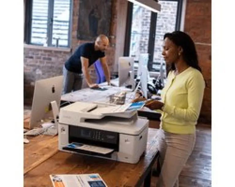 De printer is uitgerust met een automatische documentinvoer (ADF) van 50 vel, waarmee je moeiteloos grote documenten kunt scannen, kopiëren of faxen, zelfs tot A3-formaat. Via de gratis app Brother Mobile Connect print en scan je zelfs onderweg met je smartphone of tablet. Daarnaast ondersteunt de printer diverse printdiensten zoals Apple AirPrint, Google Cloud Print en Mopria Print Service voor directe en gemakkelijke printopties.