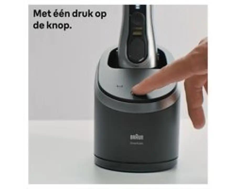 Braun 3-in-1 Shaver Care reinigt je scheerapparaat grondig door haren en huiddeeltjes te verwijderen die achterblijven na het scheren. Dankzij het unieke reinigingssysteem op alcoholbasis blijft je scheerapparaat fris en schoon, wat zorgt voor een optimale werking en bescherming van het scheerblad.