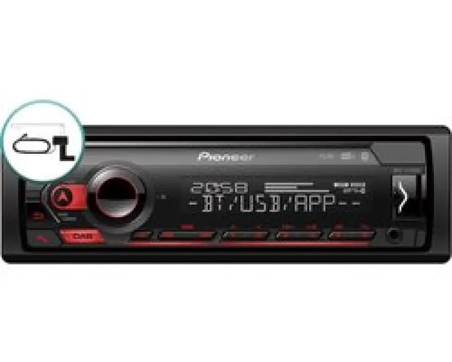 De Pioneer MVH-S420DABAN is een stijlvolle autoradio in een strak zwart design, die perfect in een 1 DIN formaat dashboard past. Met een uitgangsvermogen van 200 watt geniet je onderweg van helder en krachtig geluid. Het afneembare voorpaneel biedt extra beveiliging tegen diefstal en het opbergdoosje zorgt ervoor dat je het veilig kunt opbergen.