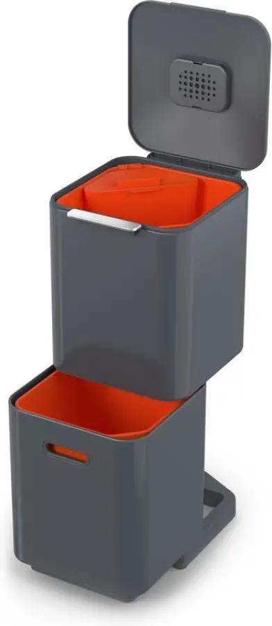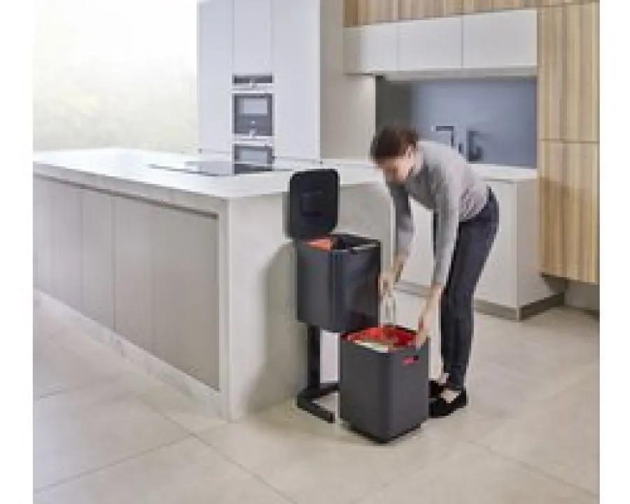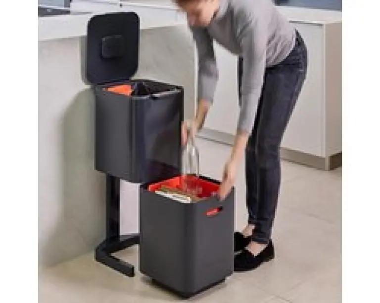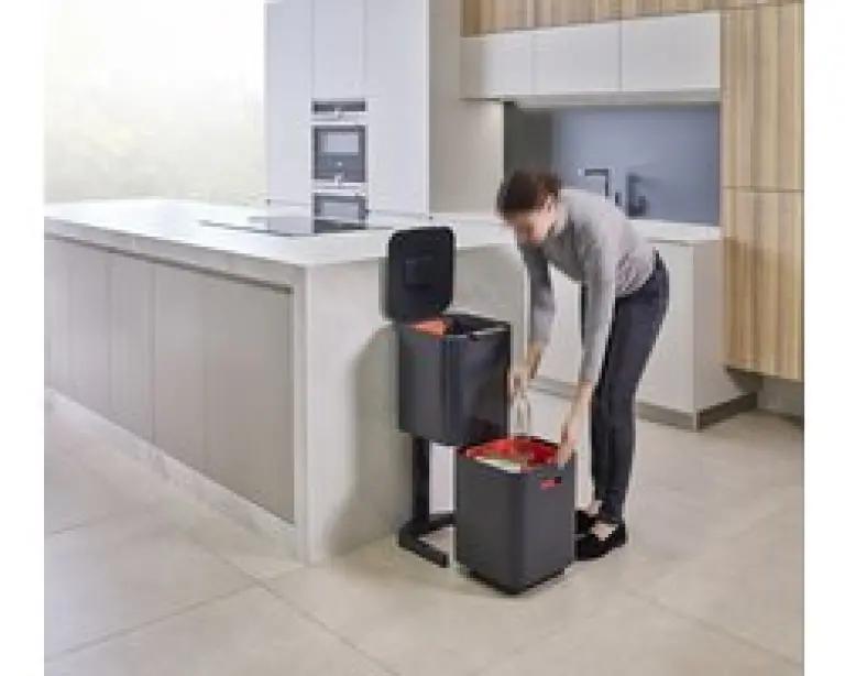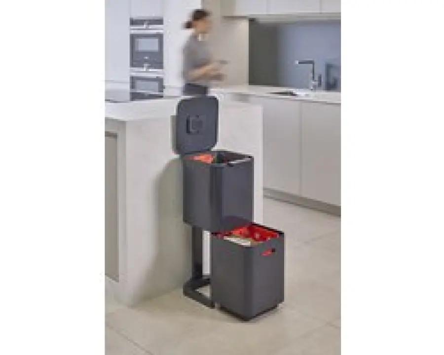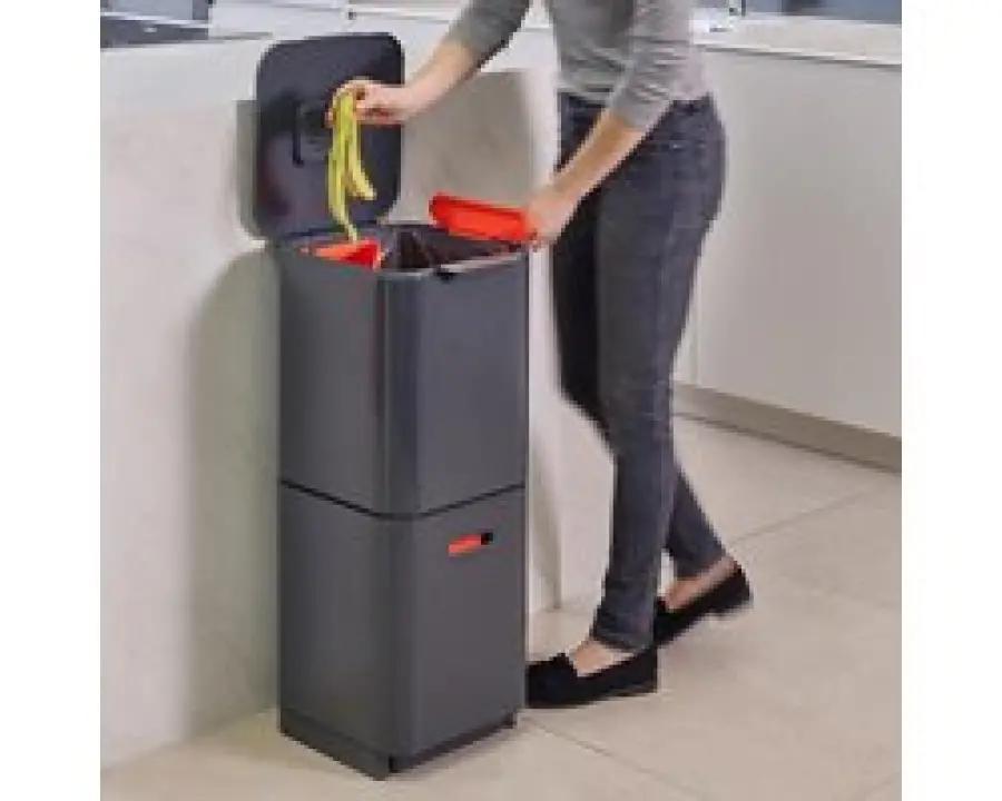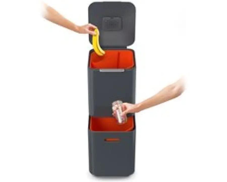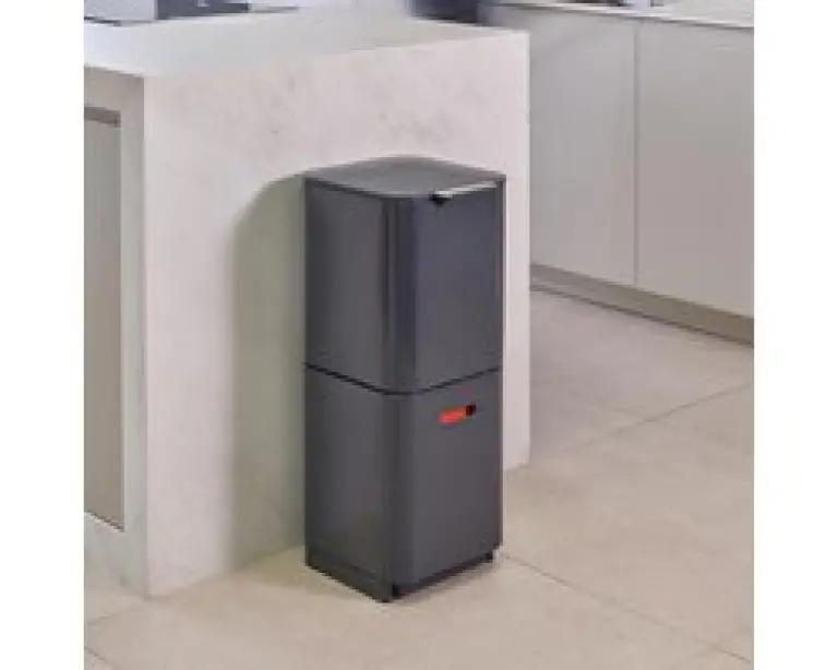 De Joseph Joseph Intelligent Waste Totem 2.0 Compact is dé afvalemmer die het scheiden van afval makkelijker maakt dan ooit. Met een totale inhoud van 40 liter, verdeeld over twee gelijke compartimenten van 20 liter elk, is deze prullenbak ideaal voor huishoudens van 2 tot 3 personen. Wat deze afvalemmer uniek maakt, is de verticale indeling van de vakken. In plaats van naast elkaar, zijn de compartimenten boven elkaar geplaatst. Dit bespaart niet alleen ruimte, maar maakt het ook veel eenvoudiger om afval te vullen en te legen zonder dat je het deksel hoeft te verwijderen.