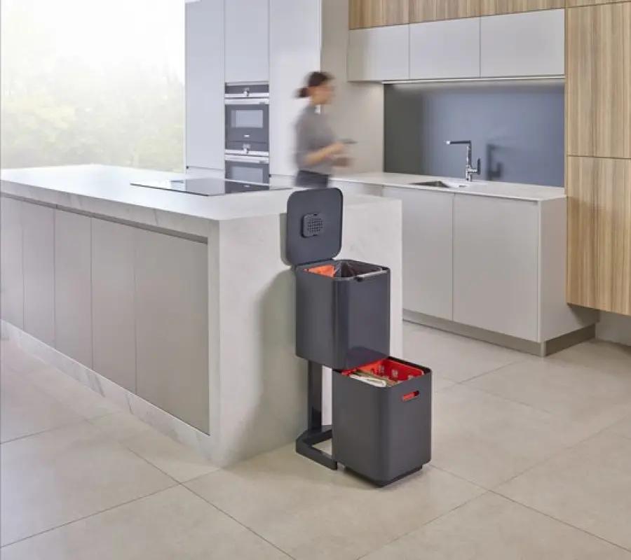 Nare geurtjes in de keuken? Niet met deze Totem 2.0! Dankzij het ingebouwde geurfilter in het deksel blijven onaangename geurtjes buiten de deur. Zo blijft je keuken fris, zelfs wanneer je afval een tijdje blijft staan. Bovendien beschikt de prullenbak over een uitneembaar GFT-bakje van 3 liter, speciaal voor organisch afval, wat het recyclen nog eenvoudiger maakt.