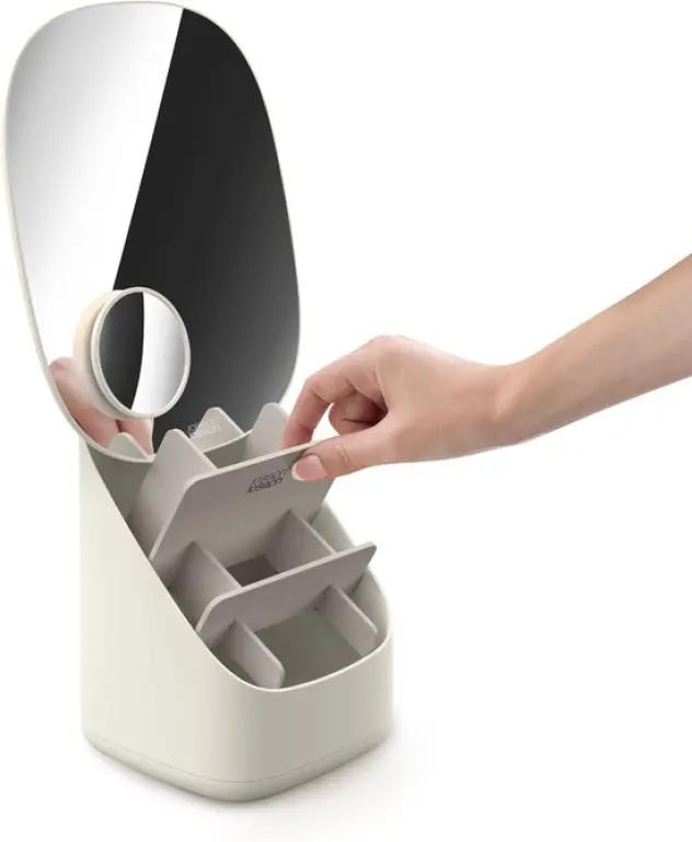 Met de Joseph Joseph Viva make-up organizer met spiegel heb je altijd overzicht over je make-up en verzorgingsproducten. Geen gedoe meer met rondzwervende spullen die je niet kunt vinden. De organizer heeft verschillende vakken waarin je bijvoorbeeld mascara, lipstick en oogschaduw netjes kunt opbergen. Zo blijft je badkamer of slaapkamer lekker opgeruimd en kun je snel bij je favoriete producten.