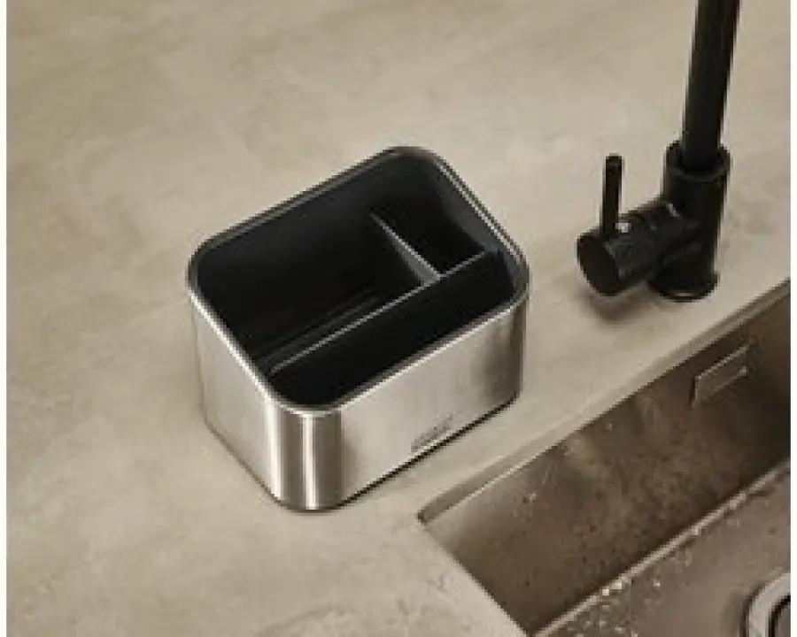 Met afmetingen van 17,5 cm breed, 12 cm diep en 12 cm hoog is deze organizer compact maar ruim genoeg om je afwasborstel, spons en afwasmiddel overzichtelijk te bewaren. Het afgeschuinde ontwerp geeft je eenvoudig toegang tot je spullen, waardoor je sneller en makkelijker kunt schoonmaken. De stevige roestvrijstalen behuizing is vingerafdrukbestendig en voorzien van antislipvoetjes, zodat de organizer stevig op zijn plek blijft staan.