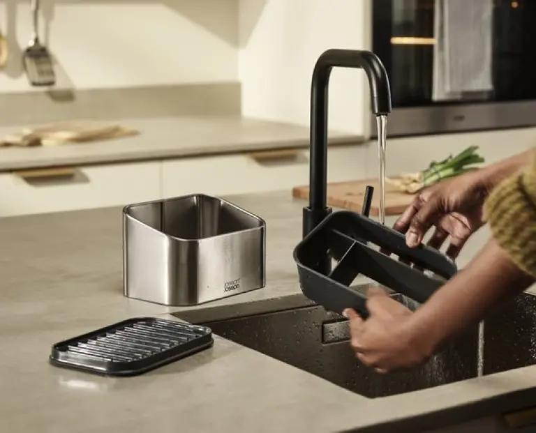 Ben je op zoek naar een slimme en stijlvolle manier om je spoelbak netjes te houden? De spoelbak organizer van Joseph Joseph is precies wat je nodig hebt. Gemaakt van hoogwaardig roestvrijstaal en kunststof, combineert dit product elegantie met functionaliteit. Het design past perfect in elke keukenstijl en zorgt voor een overzichtelijke en hygiรซnische opbergruimte voor al je afwasbenodigdheden.