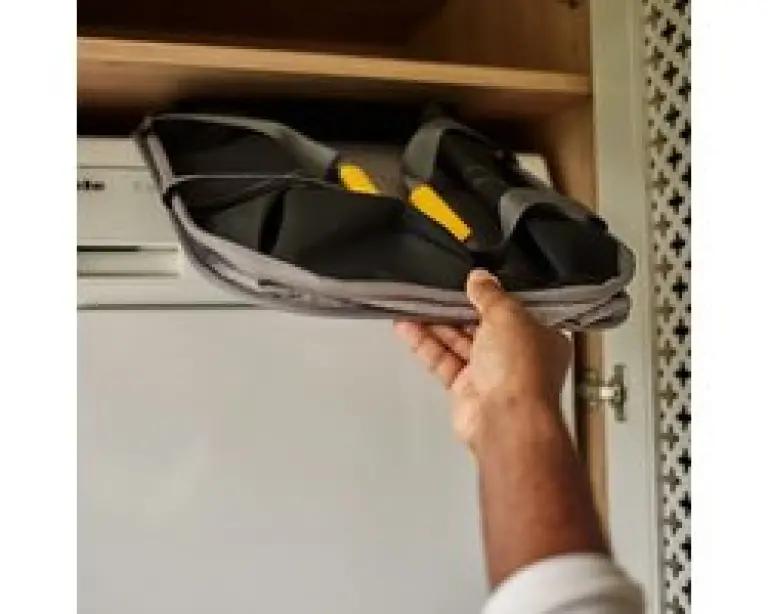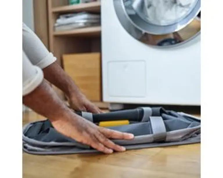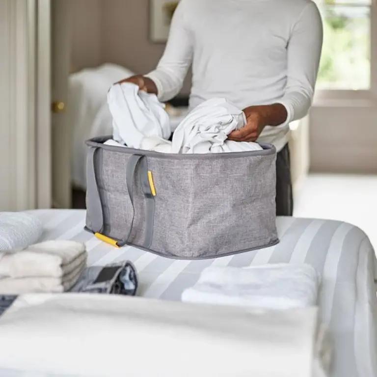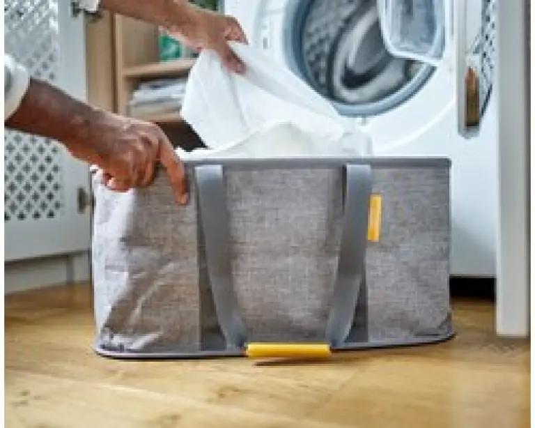 Dankzij het opvouwbare ontwerp vouw je de mand volledig plat tot slechts 2 cm dik. Hierdoor berg je hem makkelijk op in een kast of boven je wasmachine. Met een gewicht van slechts 0,8 kg neem je hem ook makkelijk mee wanneer nodig.