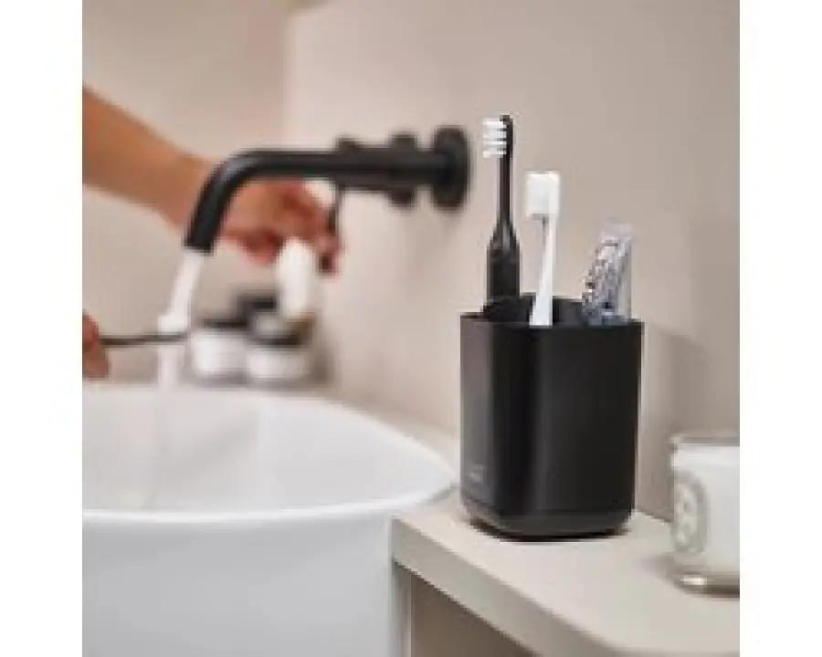 De Joseph Joseph EasyStore Large tandenborstelhouder is een slimme en elegante oplossing om je mondverzorging netjes georganiseerd te houden. Deze houder uit de EasyStore™ collectie combineert een strak, modern design met praktische functionaliteit. Dankzij de luxe matte zwarte afwerking krijgt je badkamer direct een eigentijdse uitstraling.