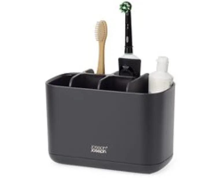 De Joseph Joseph EasyStore Large tandenborstelhouder is een slimme en elegante oplossing om je mondverzorging netjes georganiseerd te houden. Deze houder uit de EasyStore™ collectie combineert een strak, modern design met praktische functionaliteit. Dankzij de luxe matte zwarte afwerking krijgt je badkamer direct een eigentijdse uitstraling.