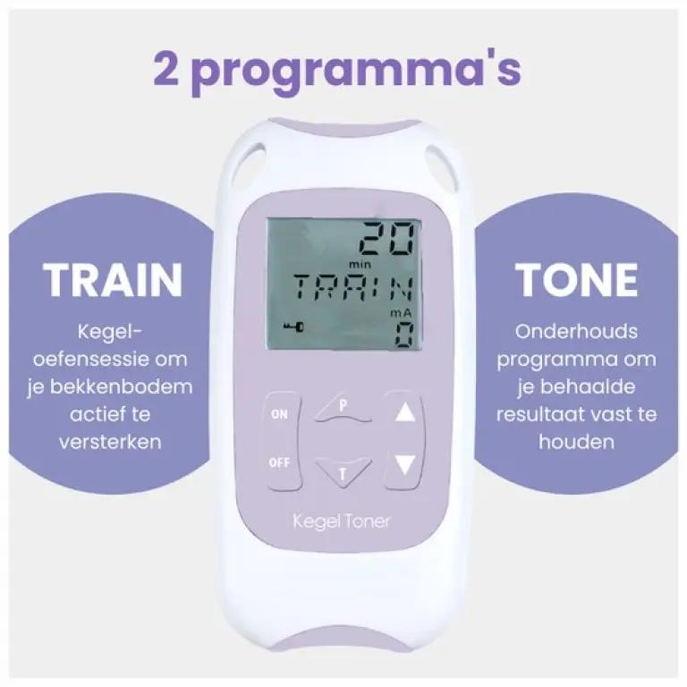 De Kegel Toner werkt door zachte elektrische pulsen naar de bekkenbodemspieren te sturen, waardoor deze samentrekken en sterker worden. Er zijn twee programma’s beschikbaar: één voor het dagelijks versterken van de spieren en één voor het onderhouden van de spierkracht. Zo zorg je voor een effectieve en comfortabele training die past bij jouw herstelproces.