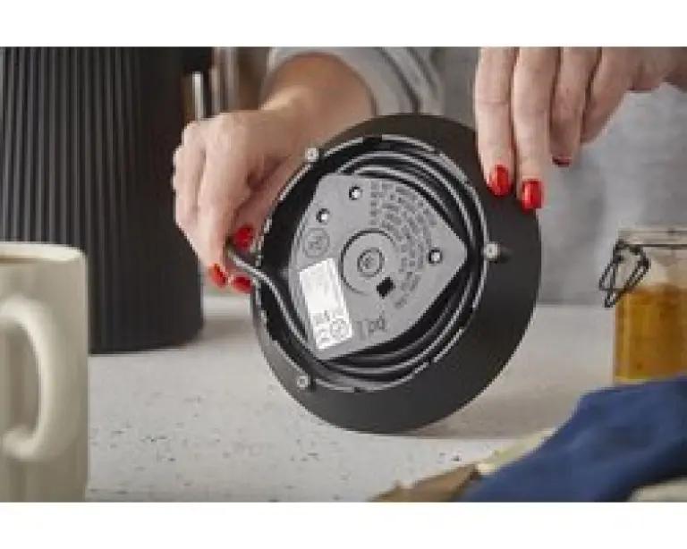 Zet de waterkoker gemakkelijk terug op zijn basis vanuit elke hoek en berg het snoer netjes op in de onderzijde.