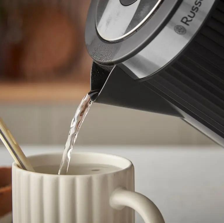 Schenk water soepel van de waterkoker naar een kopje, zonder morsen of spatten.