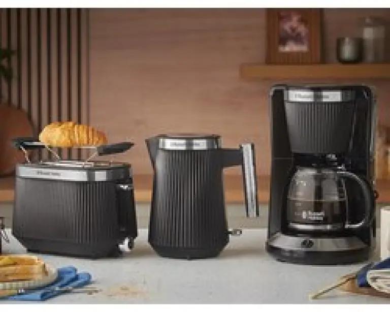 De geribbelde, matzwarte behuizing en glanzende chroomdetails geven elke keuken een stijlvolle upgrade.