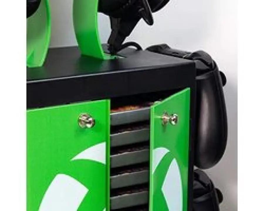 Maak je ultieme gamingstation compleet met de Numskull Official Xbox Gaming Locker. Deze handige locker biedt plek aan maximaal 10 van je favoriete games of Blu-Ray-films. Daarnaast heeft het speciale compartimenten voor al je benodigdheden zoals controllers, kabels en meer. Zo houd je alles netjes en binnen handbereik.