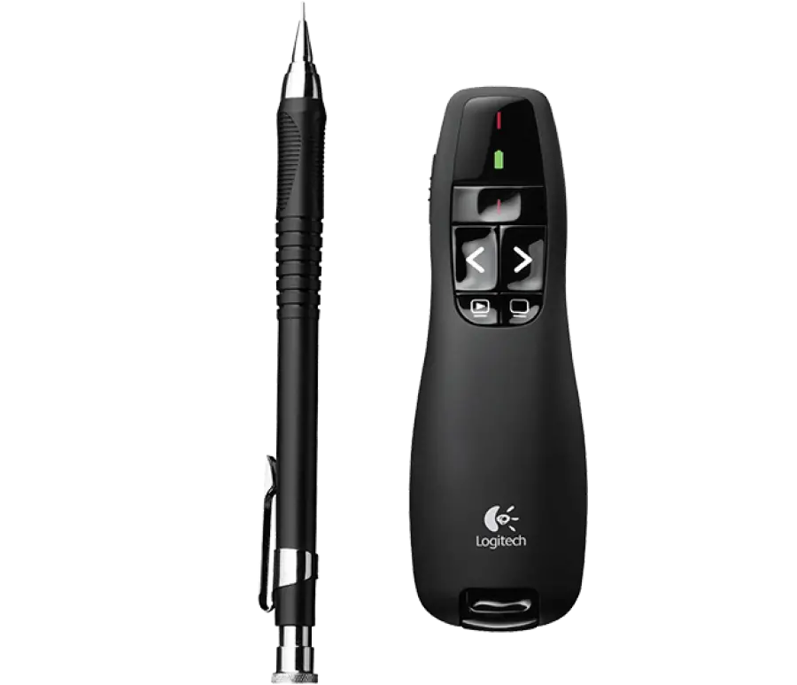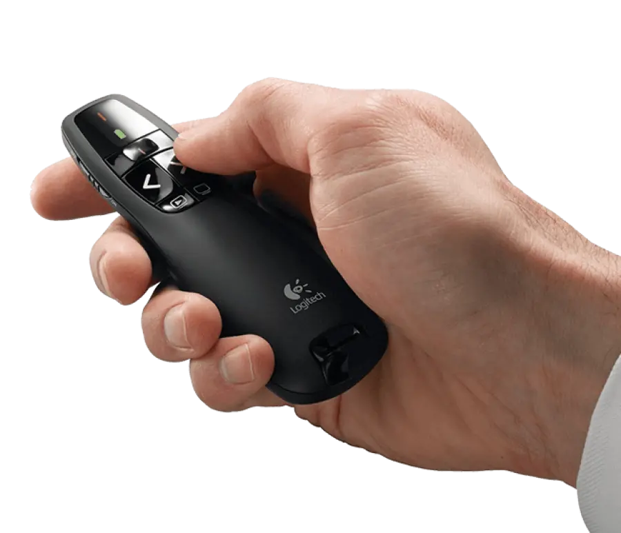 De Logitech R400 draadloze presenter maakt jouw presentaties moeiteloos en professioneel. Dankzij de intuïtieve knoppen die je gemakkelijk op de tast vindt en de comfortabele, gestroomlijnde vorm ligt de presenter lekker in je hand. Zo behoud je de volledige controle van de eerste tot de laatste dia, zonder afleiding.