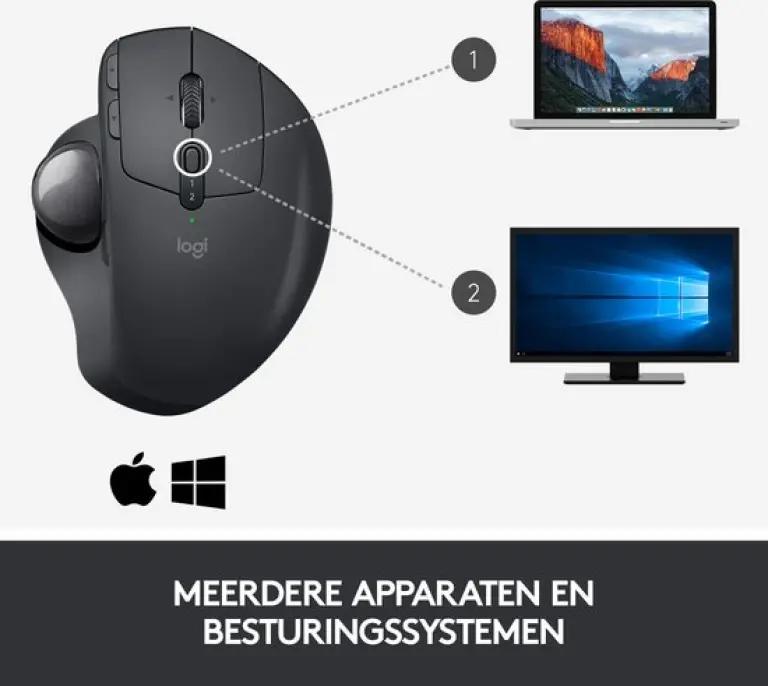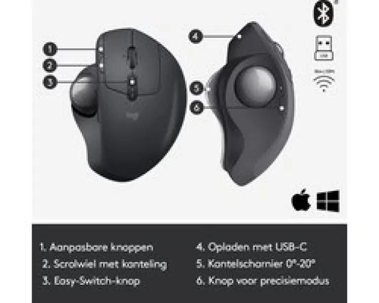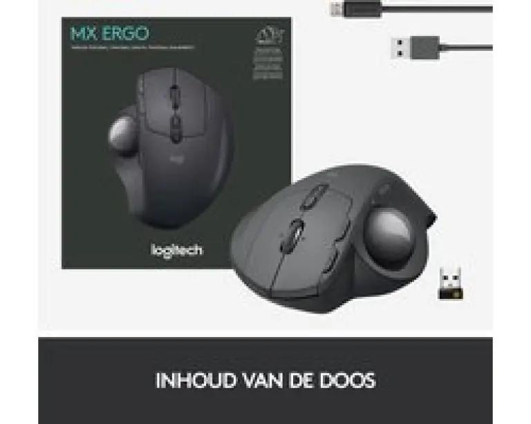 De Logitech MX Ergo Draadloze Trackball Muis is de meest geavanceerde trackball van Logitech. Voor trackball-liefhebbers en gebruikers die op zoek zijn naar alternatieven voor muizen en touchpads is dit de ideale muis. Met de knop voor precisiemodus schakel je onmiddellijk tussen snelle en nauwkeurige tracking. Compatibel met Easy-Switch en FLOW om probleemloos op meerdere computers te werken. Koppel tot 2 computers en schakel gemakkelijk tussen deze apparaten. Kopieer en plak tekst, afbeeldingen en bestanden. Snel oplaadbare batterij die tot 4 maanden meegaat na volledige oplading. Maak verbinding met de meegeleverde Logitech Unifying-ontvanger of via Bluetooth.