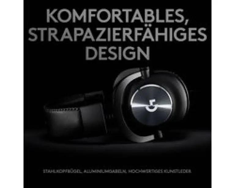 De Logitech G PRO X is voorzien van zachte oorkussens van traagschuim, met keuze uit imitatieleer of ademend velours. Dit zorgt voor passieve ruisonderdrukking en een comfortabel gevoel, zelfs tijdens lange speelsessies. Het frame is gemaakt van staal en aluminium, wat de headset sterk en duurzaam maakt zonder aan draagcomfort in te boeten.