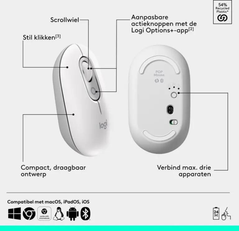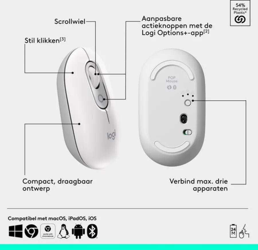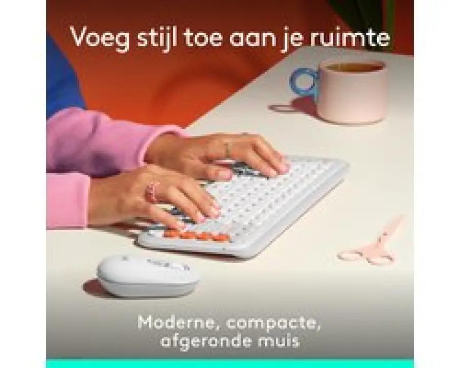 De Logitech POP Mouse in off-white is niet zomaar een muis, maar een echte eyecatcher met een fris, modern design. Dankzij het compacte en afgeronde ontwerp neem je deze draadloze bluetooth muis makkelijk overal mee naartoe. Of je nu thuis werkt, onderweg bent of in een café zit, deze muis past perfect in je hand en tas.