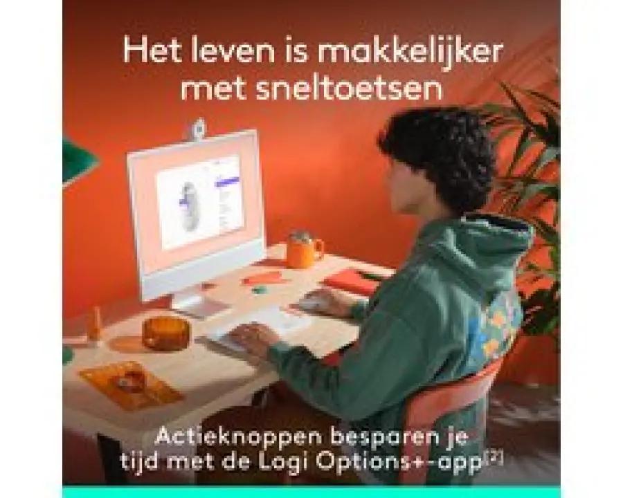 Met de Silent Touch-technologie elimineert deze muis maar liefst 90% van het klikgeluid, zodat je in alle rust kunt werken zonder storende klikgeluiden. De programmeerbare knoppen en het SmartWheel zorgen ervoor dat je snel en soepel door documenten en webpagina’s scrolt en eenvoudig schakelt tussen werk-, sociale media- en pauzemodi zoals Spotify en Netflix. Via de Logi Options+-app pas je de knoppen helemaal aan naar jouw wensen.
