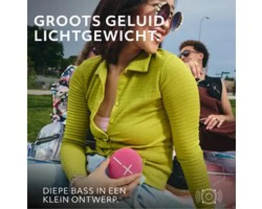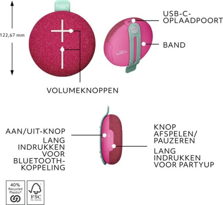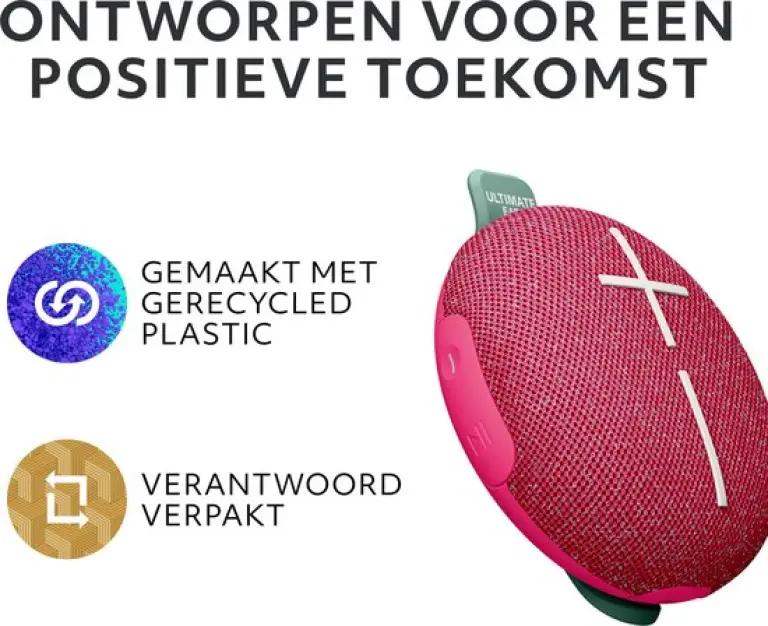 De speaker is gemaakt van minimaal 40% post-consumer gerecycled plastic, waarmee je ook een bewuste keuze maakt voor het milieu.