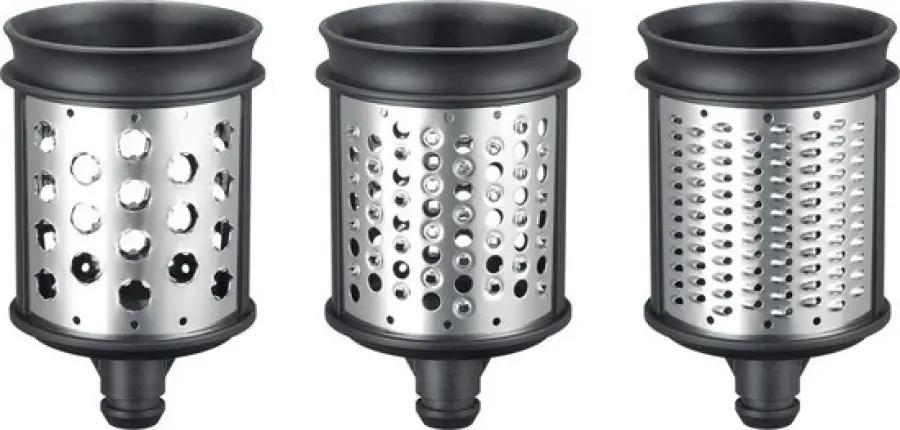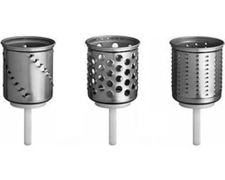 Met de KitchenAid 5KSMEMVSC trommelraspset breid je jouw keukenmachine uit met drie handige trommels. Deze set is speciaal ontworpen voor gebruik met de 5KSMVSA mixer, zodat je nog meer uit jouw apparaat haalt. De trommels zijn gemaakt van duurzaam roestvrij staal en zorgen voor een lange levensduur en optimale prestaties.