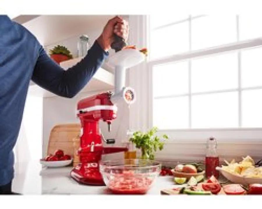 De KitchenAid 5KSMFGA voedselvermaler is een onmisbaar accessoire voor je mixer of keukenrobot. Met deze populaire voedselmolen vermaal en hak je snel allerlei soorten ingrediënten. Of je nu gehaktbrood, falafel, salsa of burgers wilt maken, deze voedselvermaler helpt je om thuis voedzame en smakelijke gerechten te bereiden.