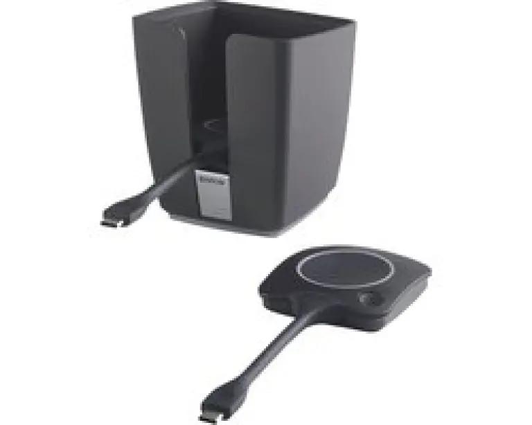 Het zwarte tray met een breedte van 21 cm biedt een nette plek voor je Clickshare knoppen. Het gewicht van 2 kg zorgt voor een stevige basis, zodat alles op zijn plek blijft tijdens het gebruik. Het compacte formaat past moeiteloos op elke vergadertafel zonder ruimte in te nemen.