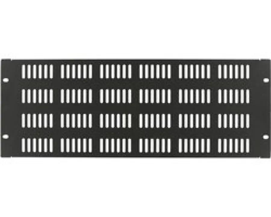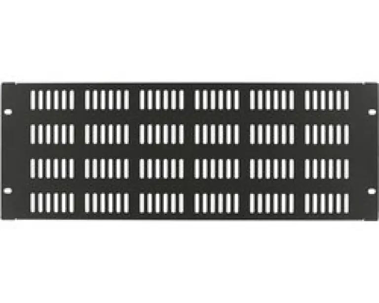 Dit paneel heeft een rackcapaciteit van 4U, wat betekent dat het vier units hoog is. Met een breedte van 48,3 cm (19 inch) en een diepte van slechts 15 mm past het perfect in standaard racks. De zwarte kleur geeft het paneel een moderne en neutrale uitstraling die bij vrijwel elke opstelling past.
