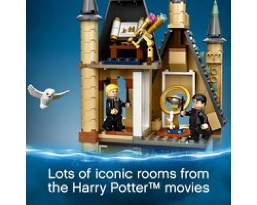 Kinderen kunnen geweldige personages en magische functies ontdekken in LEGO Harry Potter Hogwarts De Astronomietoren. De toren zit boordevol kamers die je zult herkennen uit de Harry Potter™ films. Ga samen met Harry naar het klaslokaal van professor Hildebrand Slakhoorn en voeg je daarna bij de andere leerlingen op zijn feestje. Bekijk de magische Mandragora in de kas en verken daarna de slaapzaal van Ravenklauw en de coole astronomie-apparatuur.