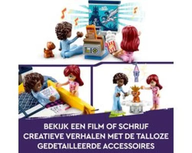 Kinderen vanaf 6 jaar kunnen hun eigen verhalen verzinnen met deze LEGO Friends Aliya's kamer (41740) bouwset, waarin Paisley en Aliya samen verhalen schrijven tijdens hun logeerpartij.