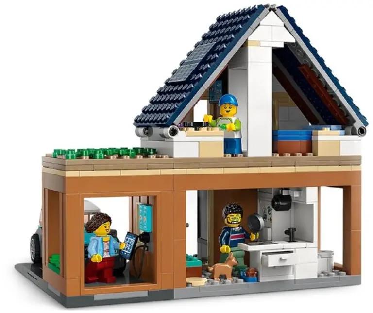 Dit LEGO City Gezinswoning en elektrische auto (60398) bouwbare speelgoed voor kinderen vanaf 6 jaar bevat modulaire kamers: een serre met eethoek, een keuken, 2 slaapkamers en een badkamer. Er is ook een 'oplaadpunt' voor elektrische voertuigen en 'zonnepanelen', plus een LEGO wegplaat om hem op andere LEGO City sets aan te sluiten, evenals 3 mini figuren en een puppy figuur voor urenlang speelplezier.