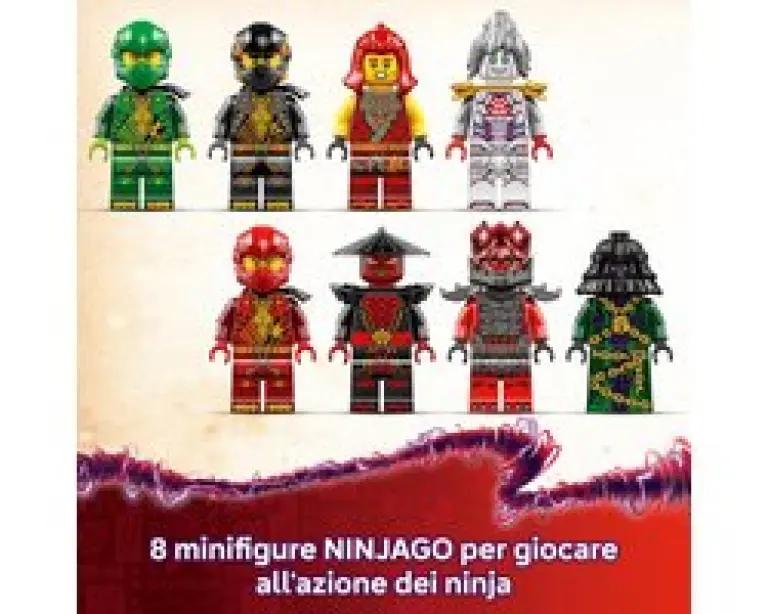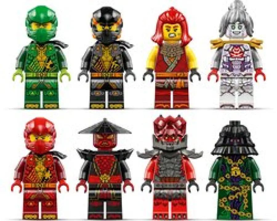 De set wordt geleverd met 8 minifiguren: de ninjastrijders Lloyd, Cole, Wyldfyre, Kai en hun bondgenote Pixal, plus de schurken Drix, Zarkt en een Draconische strijder. Elk personage heeft zijn eigen ninjawapen. Daarnaast zit er een cool Spinjitzu spinnervoertuig bij waarin je een minifiguur kunt plaatsen. Door op een knop op de lanceerder te drukken, laat je het voertuig snel rondtollen en kun je krachtelementen afschieten voor extra speelplezier.