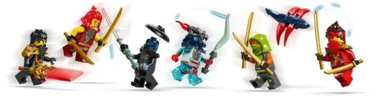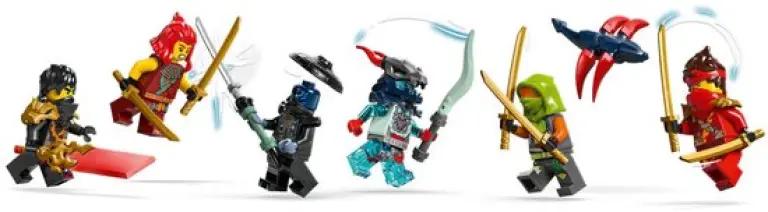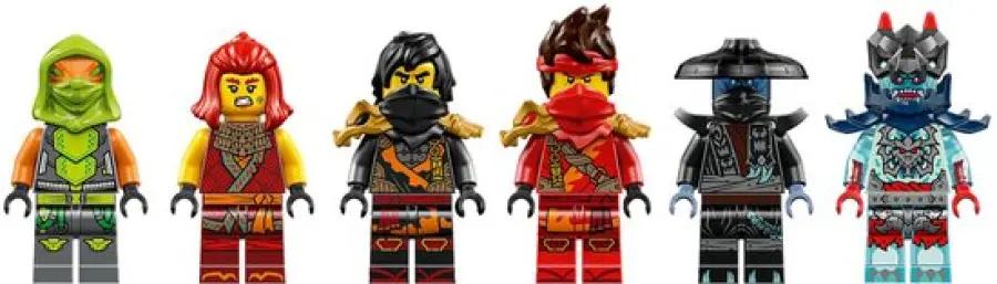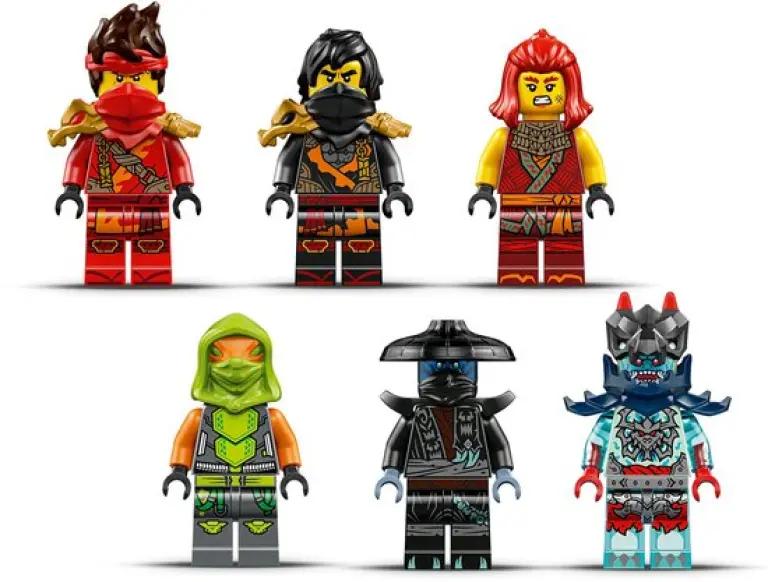 Deze set bevat maar liefst 6 minifiguren, waaronder Kai, Wyldfyre, Cole, Nokt, een Draconische geestverkenner en voor het eerst Frak. Elk personage komt met coole wapens zoals gouden katana's en een doorschijnend onthullingszwaard van Cole. Het geheimzinnige banier van de schurken onthul je alleen met Cole's zwaard, wat zorgt voor extra speelsensatie. Met deze minifiguren en voertuigen kun je eindeloos rollenspellen spelen en je eigen ninja-avonturen creëren.