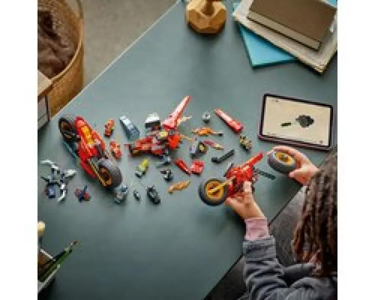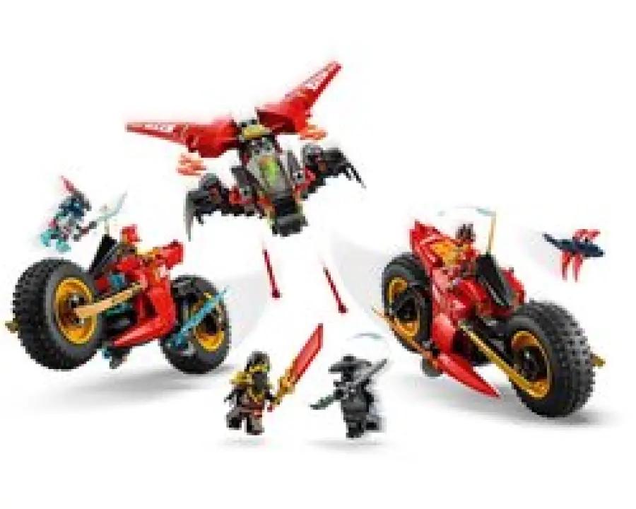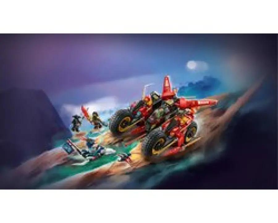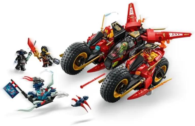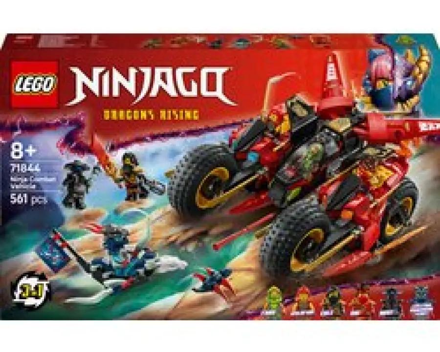 Met de LEGO NINJAGO Ninja Strijdvoertuig 3-in-1 speelset (71844) beleef je de spannende scènes uit seizoen 3 van de NINJAGO Dragons Rising tv-serie. Dit gave speelgoed voor jongens en meisjes vanaf 8 jaar combineert bouwen en spelen op een unieke manier. Begin met een groot, stoer strijdvoertuig dat je vervolgens opsplitst in drie kleinere voertuigen: Kai's motor, Wyldfyre's motor en Fraks vliegtuigje met twee noppenschieters. Zo wissel je makkelijk tussen actie op de grond en in de lucht!