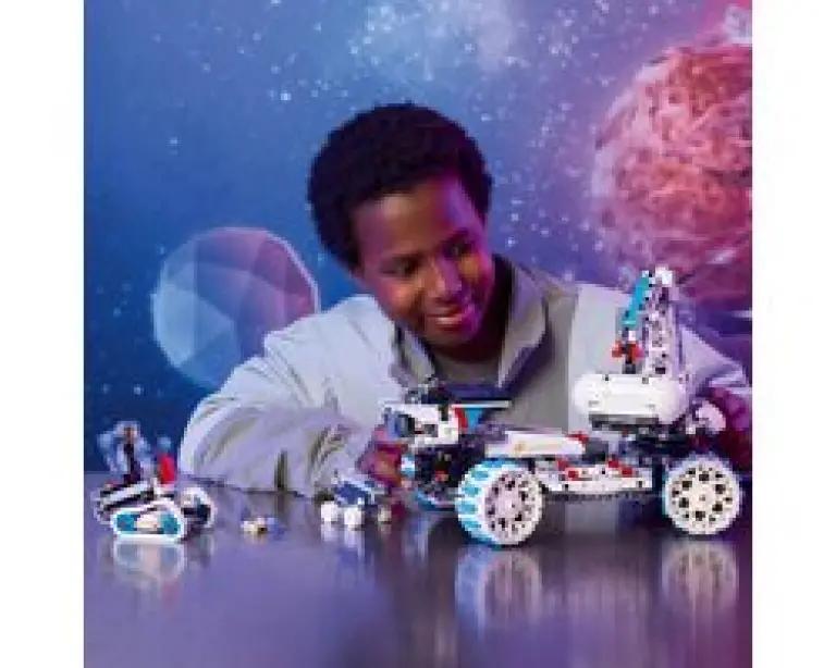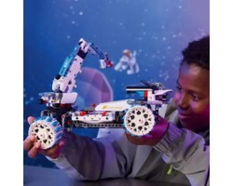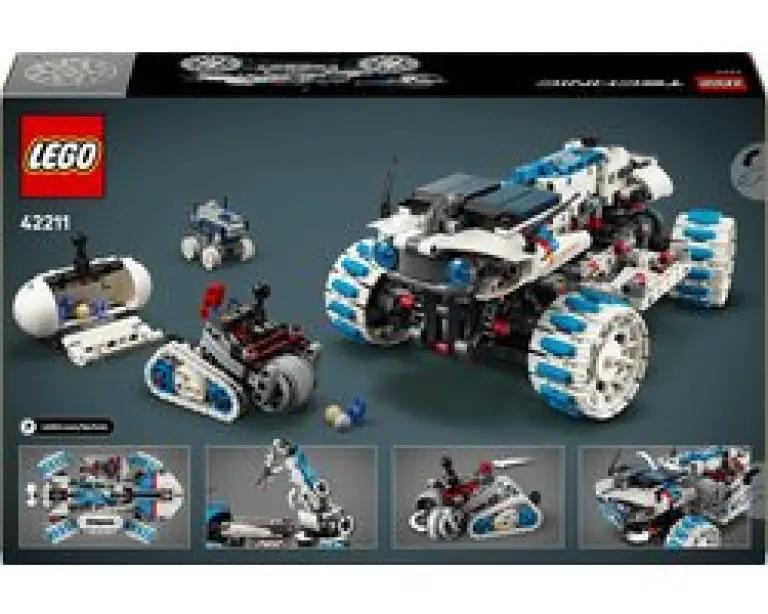 Laat de fantasie van jongens en meisjes vanaf 10 jaar tot grote hoogten stijgen! Dit LEGO® Technic Lunar Outpost™ maanrover ruimtevoertuig (42211) is geïnspireerd op echte Lunar Outpost voertuigen waarmee de mens opnieuw voet op de maan kan zetten. De set bevat een maanrover, een mijnrover en een MAPP-rover voor eindeloze ontdekkingsreizen.Deze set heeft veel functies om creatieve verhalen te stimuleren. Het hoofdmodel is een futuristische maanrover met flexibele ophanging, 4-wielbesturing, uitklapbare zonnepanelen en een draaibare arm. Gebruik de arm om de kleinere mijnbouwrover eraf te tillen en stuur hem op een missie om regoliet (maanstenen) te vinden. Bewaar de stenen in de monstercontainer en gebruik de MAPP-rover om meer informatie over het oppervlak van de maan te verzamelen.Deze set is een leuk cadeau voor jongens en meisjes die van wetenschap en robotspeelgoed houden en voor iedereen met een passie voor ruimtevaart en maanverkenning. De set bevat 1082 onderdelen.