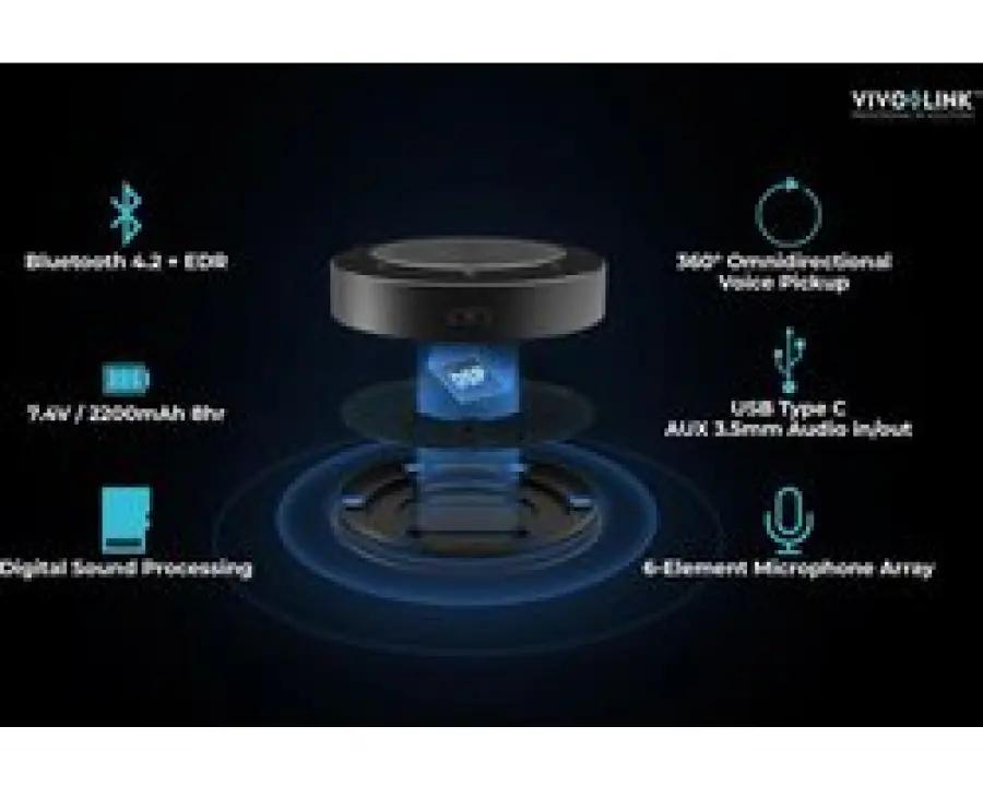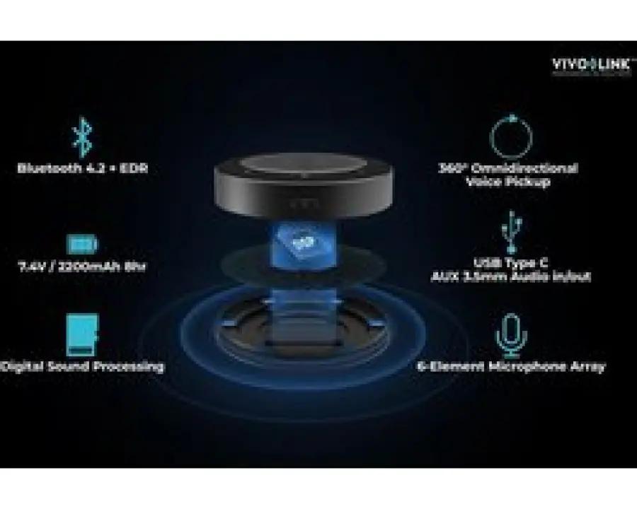 De VivoLink VLSP20 is een compacte en krachtige speakerphone, ideaal voor vergaderingen met maximaal 3 personen. Dankzij de eenvoudige USB-A aansluiting en Bluetooth 4.2 technologie kun je hem makkelijk verbinden met je smartphone, tablet of pc. Je kunt zelfs tot 3 apparaten tegelijk koppelen, wat zorgt voor een flexibele en snelle opstart van je videoconferenties.