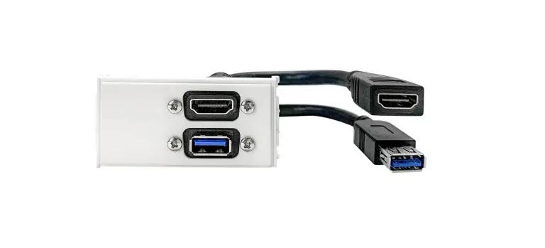 De wandcontactdoos is geschikt voor maximaal 2 modules, waarbij deze uitvoering één stopcontact biedt met HDMI en USB A aansluitingen. Het witte frame geeft een frisse en strakke uitstraling, waardoor het een mooie en functionele toevoeging is aan je wand.