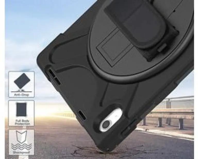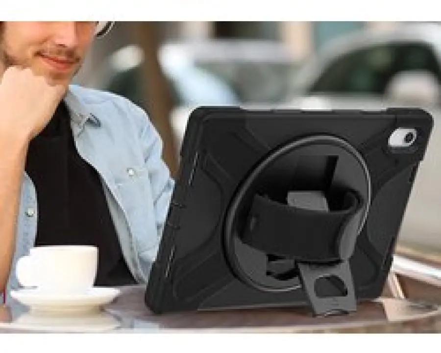De tabletbehuizing heeft een geïntegreerde standaard, zodat je je iPad gemakkelijk rechtop kunt zetten voor bijvoorbeeld filmpjes kijken of videobellen. Daarnaast wordt hij geleverd met een praktische schouderband, waarmee je je tablet comfortabel kunt dragen, ideaal voor onderweg of op school.