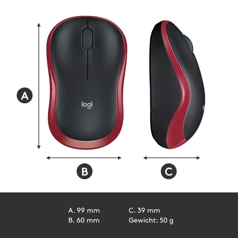 Logitech LGT-M185R - Draadloze Muis - Rood - Ambidextrous - 12 Maand Batterij