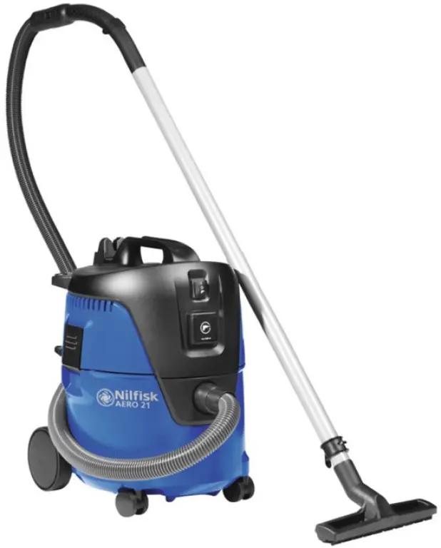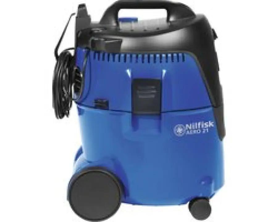 De Nilfisk AERO 21-21 PC is een compacte en lichte nat- en droogzuiger die ideaal is voor kleinere reinigingstaken in werkplaatsen en winkels. Met een inhoud van 20 liter is hij perfect voor het snel en efficiënt schoonmaken van diverse ruimtes. Het apparaat is uitgevoerd in zwart en blauw, wat het een stoere en professionele uitstraling geeft.