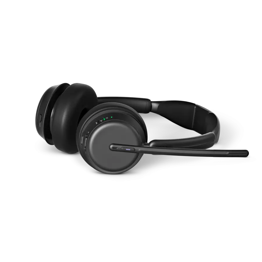 Met een lichtgewicht ontwerp, zachte oorkussens en een gevoerde, verstelbare hoofdband ervaar je de hele dag door comfortabel draagplezier. Super Wideband audio en stereogeluid zorgen voor een natuurlijke luisterervaring, waardoor gesprekken prettig en helder klinken. De hoofdtelefoon is bovendien voorzien van een intuïtieve bediening direct op de headset, zodat je gemakkelijk gesprekken start, pauzeert of beëindigt door simpelweg de microfoonarm te bewegen.
