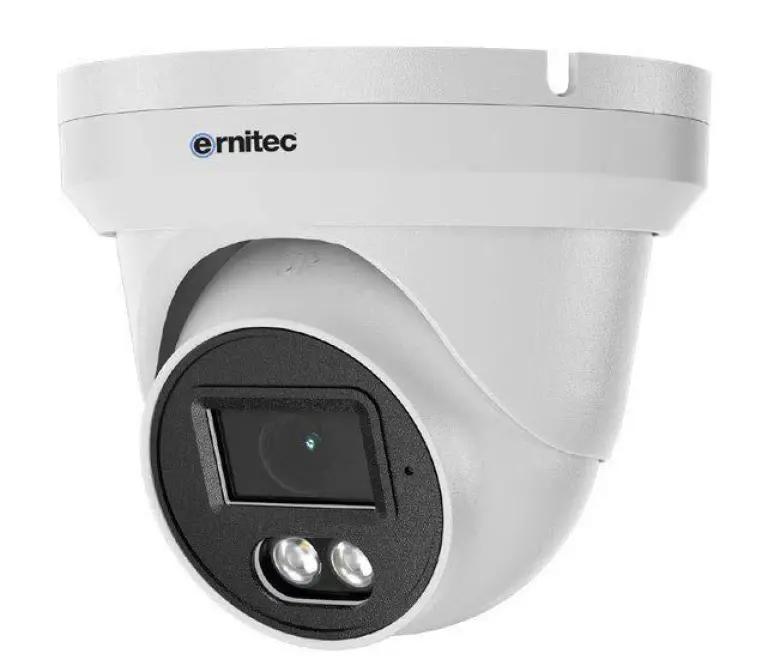 De Ernitec camera ondersteunt video bewegingsdetectie en kan privézones maskeren, zodat je alleen relevante beelden bewaakt. Met de ingebouwde microfoon en luidsprekers kun je ook geluid opnemen en communiceren via de camera. De camera werkt bedraad met Power over Ethernet (PoE), wat betekent dat je stroom en data via één kabel binnenkrijgt. Bovendien kun je tot 10 gebruikers toegang geven en geheugenkaarten tot 256 GB gebruiken voor opslag.
