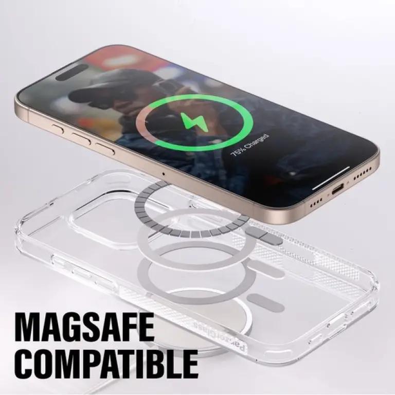 Met een militaire standaard valtest (MIL-STD-810H) beschermt deze hardcase je telefoon tegen vallen tot wel 4,8 meter hoogte. Dat is flinke bescherming voor alledaagse ongelukjes en meer. Daarnaast is de hardcase MagSafe geschikt, dankzij de ingebouwde magneet die naadloos werkt met alle MagSafe accessoires en draadloze laders. Zo laad je je iPhone makkelijk en snel op zonder het hoesje te verwijderen.