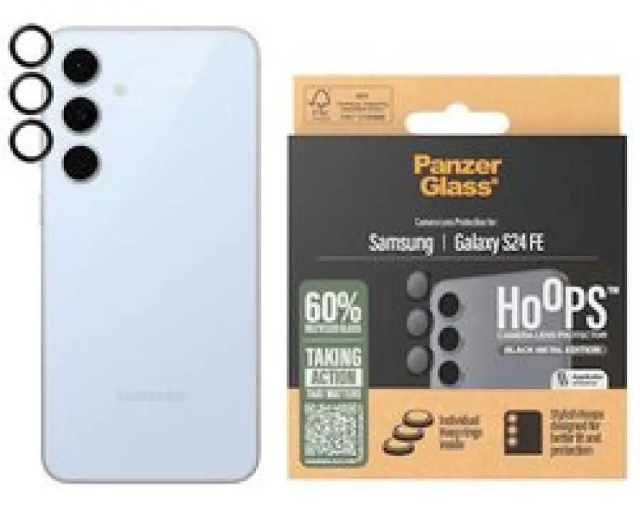 | Verpakkingsinhoud | PanzerGlass Hoops Samsung Galaxy S24 FE Glazen Camera Lens Protector - Case Friendly - Zwart |