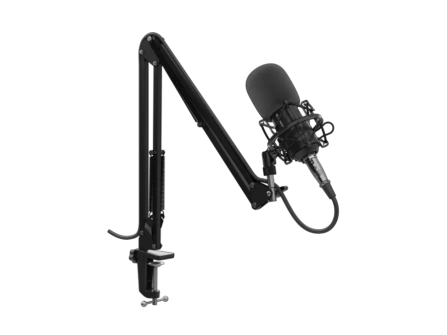 Deze microfoon is gebouwd om lang mee te gaan dankzij het stevige metalen frame. De meegeleverde microfoonarm met anti-shock mount zorgt voor een perfecte positionering en comfort tijdens lange gamesessies. Daarnaast bevat het pakket handige accessoires zoals een popfilter om plofgeluiden te voorkomen en een microfoon spons voor extra bescherming.