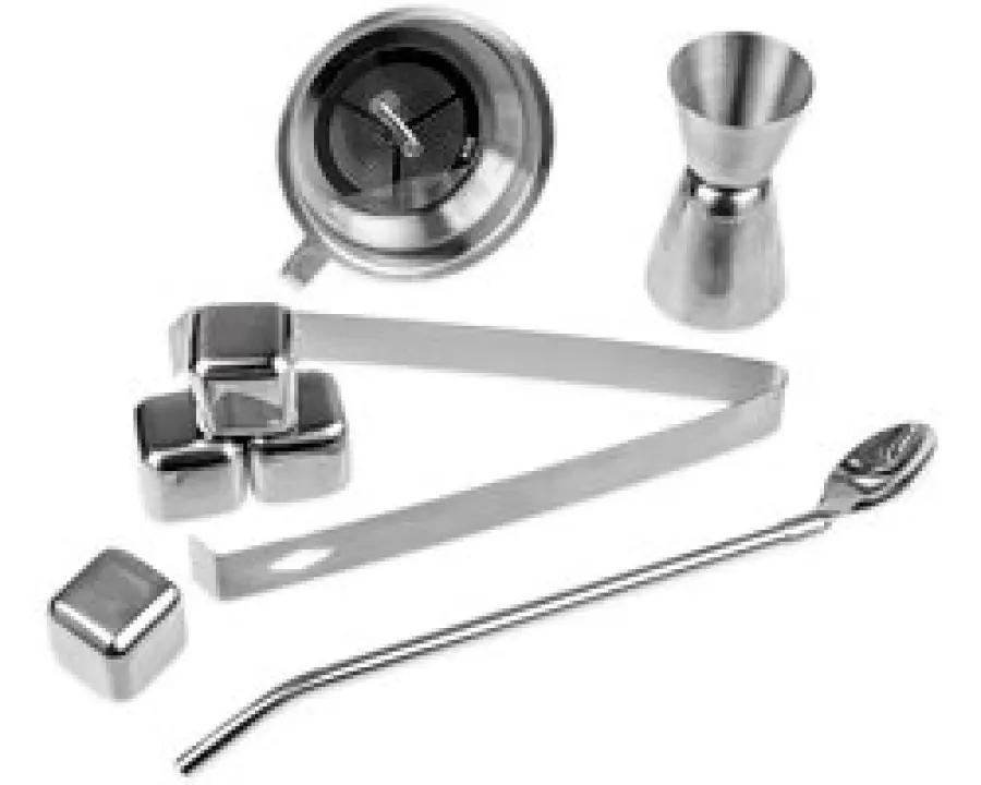 Je krijgt drie glazen flessen van 250 ml om je alcohol in te bewaren en te laten rijpen. Daarnaast zorgen metalen ijsblokjes en tangen ervoor dat je je drankjes lang koel kunt houden zonder ze te verwateren. Met de barmanlepel en maatbeker meet je elke portie precies af, wat zorgt voor perfecte smaakcombinaties en een professioneel resultaat.