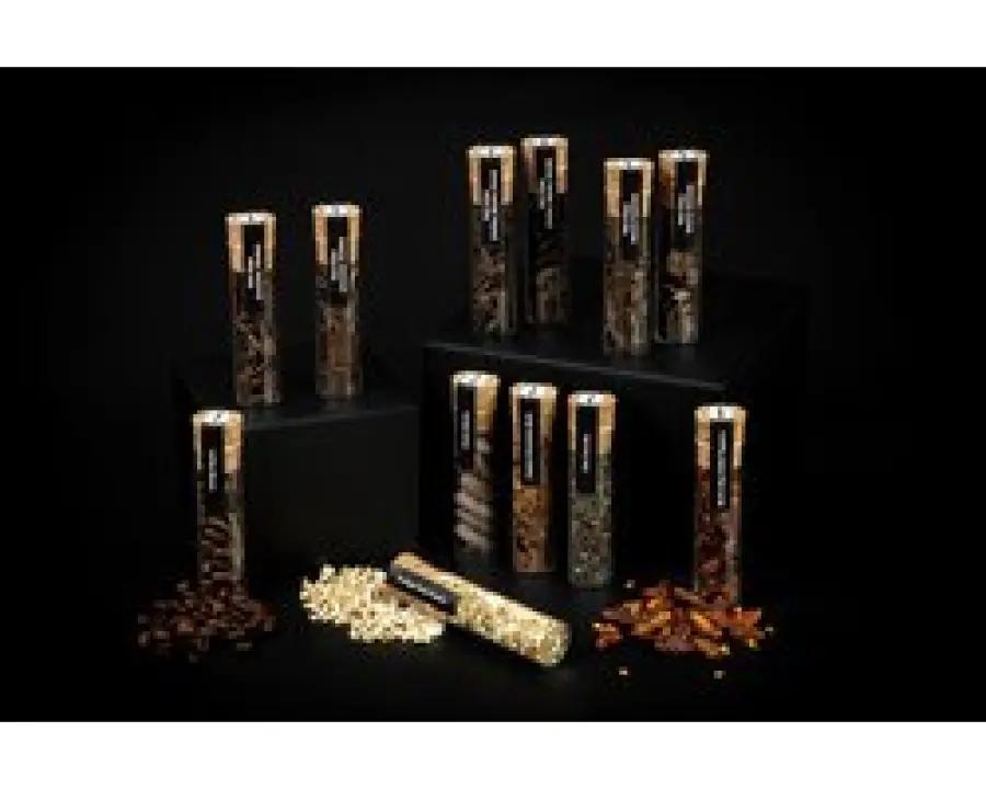 De set bevat 12 glazen flesjes van 20 ml gevuld met topkwaliteit kruiden zoals Ceylon kaneel, gedroogde sinaasappelschil, chai thee, vogeloog chili peper, koffie- en cacaobonen en verschillende soorten eiken vlokken met smaken van karamel, vanille, toffee, kruiden en cacao. Hiermee kun je unieke whisky smaken creëren en je drankjes helemaal personaliseren naar jouw smaak.
