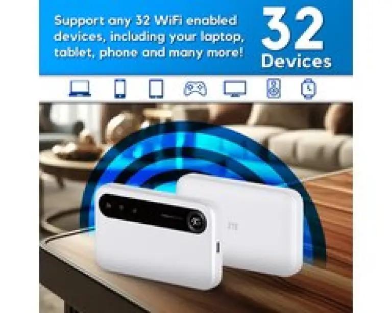 Met deze hotspot kun je tot wel 32 gebruikers tegelijkertijd van internet voorzien. Perfect voor samen met vrienden, familie of collega’s die allemaal draadloos willen internetten. Dankzij de dual-band WiFi (2.4 & 5 GHz) met Wireless AX-standaard geniet je van een stabiele en snelle verbinding, zelfs bij veel gebruikers.