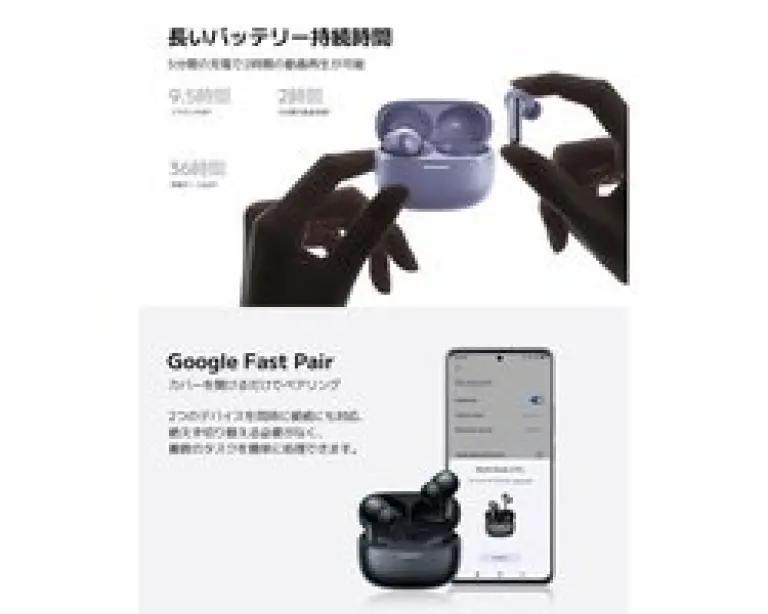 De earbuds zijn waterbestendig en worden geleverd met een smartcase en verschillende maten oordopjes (S, M, L) voor een perfecte pasvorm. Bedien ze eenvoudig met touchbediening en maak gebruik van spraakassistenten voor handsfree controle.